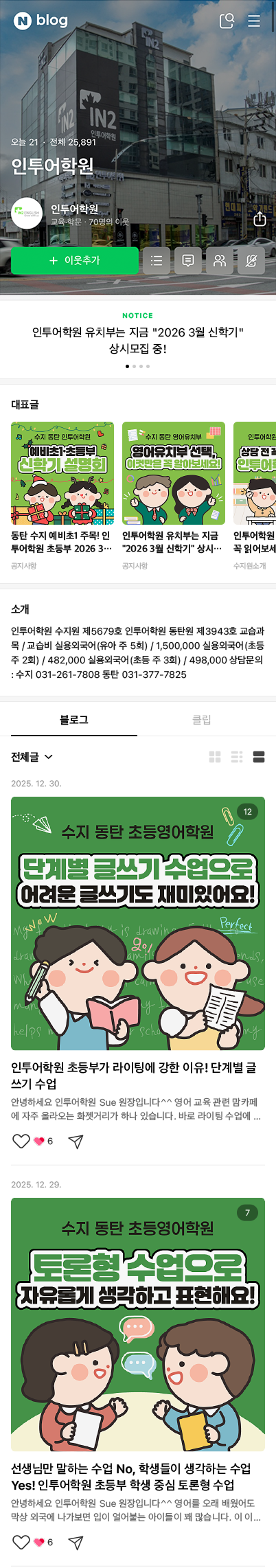 업종/소개 문장과 대표 키워드를 정리해 검색·클릭 이후 “무슨 학원인지”가 즉시 이해되도록 세팅합니다.